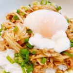 えのきとひき肉で出来る簡単どんぶりレシピです。ダイエットにおすすめです。