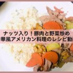 ナッツをいれた中華風アメリカン。豚肉と野菜とナッツの炒め物