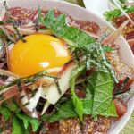 Hello! What I cooked today is “Marinated bonito bowl”. I eat bonito marinated with soy sauce, mirin and sesame on top of freshly cooked rice. The video of this recipe is available on YouTube, so please watch it!