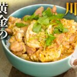 ⑥煮込みながらアクが出たらとり、鶏肉の火の通り具合を確認する。最後に溶いた卵を2回に分けて入れてとじていく。