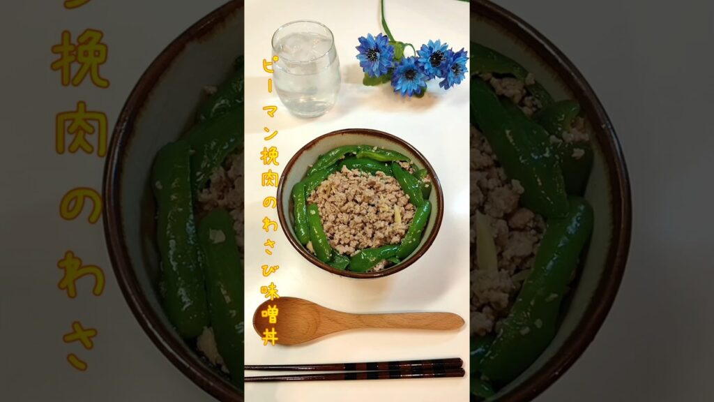 ピーマン挽肉のわさび味噌丼 わさびと味噌でスッと味わえる丼作りました【節約ごはん401】#shorts #簡単レシピ #料理 #節約 #節約料理