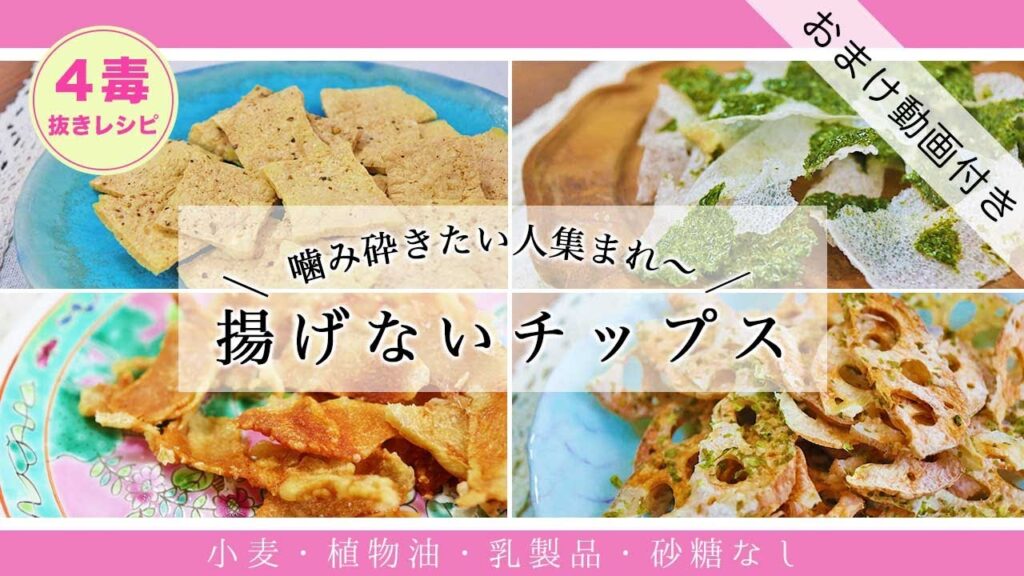 【4毒抜きレシピ】鶏肉や野菜がチップスになる|ライスペーパーレシピ|ノンフライ無添加おやつ|ポテチの代わりに|海苔せんべい|4毒抜きおやつ【小麦・植物油・乳製品・砂糖なし】
