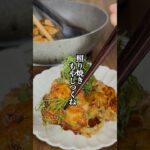 04.フライパンに油を敷き中火で温め、③を一口大に纏めながら入れて3分間焼きます。