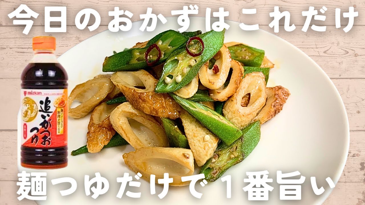 🍳オクラとちくわの麺つゆ炒め
