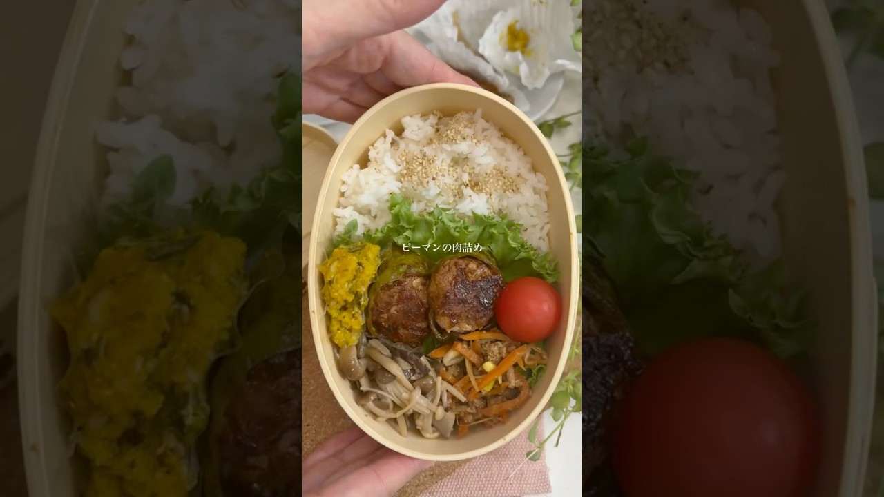 【手が汚れない♪楽チンピーマンの肉詰め弁当👩🏻‍🍳】