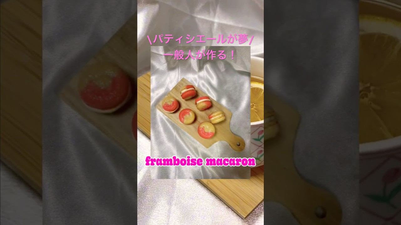フランボワーズマカロンに挑戦‼️メイン動画では詳しい作り方やレシピが載ってます!ぜひ見てください🙏またコメンでアドバイス待ってます!
