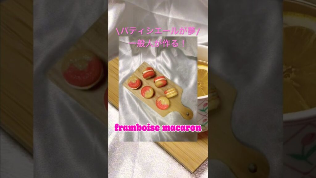 フランボワーズマカロンに挑戦‼️メイン動画では詳しい作り方やレシピが載ってます!ぜひ見てください🙏またコメンでアドバイス待ってます!