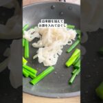 3)フライパンにごま油(大さじ1)と葉ねぎを入れ、炒めます。香りが出たら、茹でた白米麺を加え、酒を振り入れ、蓋をして1分ほど蒸し焼きにします。一度、お皿に取り出します。