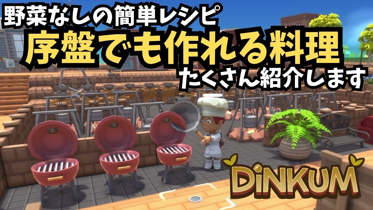 前回わたしのオススメ料理6選をご紹介しましたが、野菜やその他の食材が揃ってからでないと作れないものばかりだったので、いまSwitch版のリリースを楽しみにされている方や、始めたばかりの方がすぐに作れるレシピではありませんでした。Dinkumにはたっくさんの料理や飲み物・スープがありますので、序盤からでも料理を選んだりすることを楽しめるように今回の企画は組んでみました。