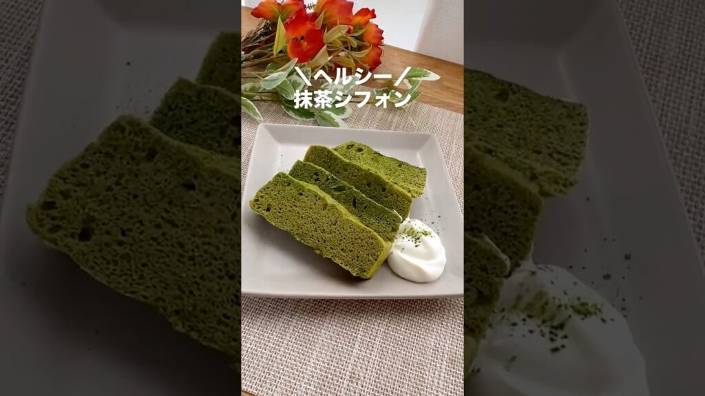 \ふわしゅわ!ヘルシー抹茶シフォン/#ヘルシースイーツ#ヘルシーおやつ #抹茶スイーツ #ふわふわ#ダイエットスイーツ#簡単レシピ