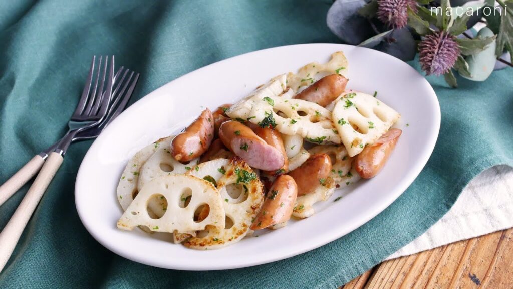 【れんこんとウインナーのジャーマン風炒め】メイン食材2つ!おつまみに最適♪